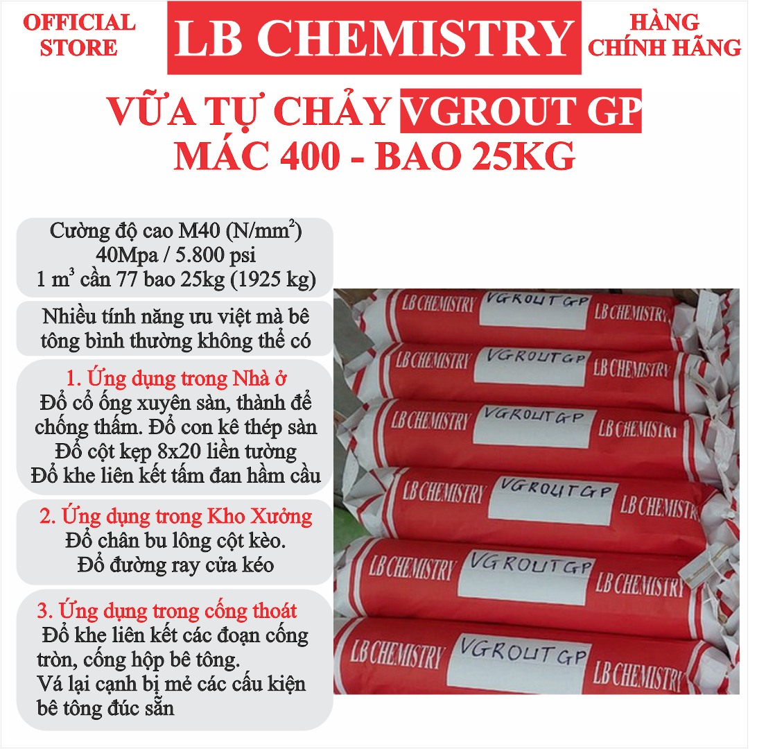 VGROUT GP | 40 Mpa (N/mm2) 5.800 psi | Non-shrink general purpose grout | Made in Vietnam | High quality | Lowest Price | LB Chemistry